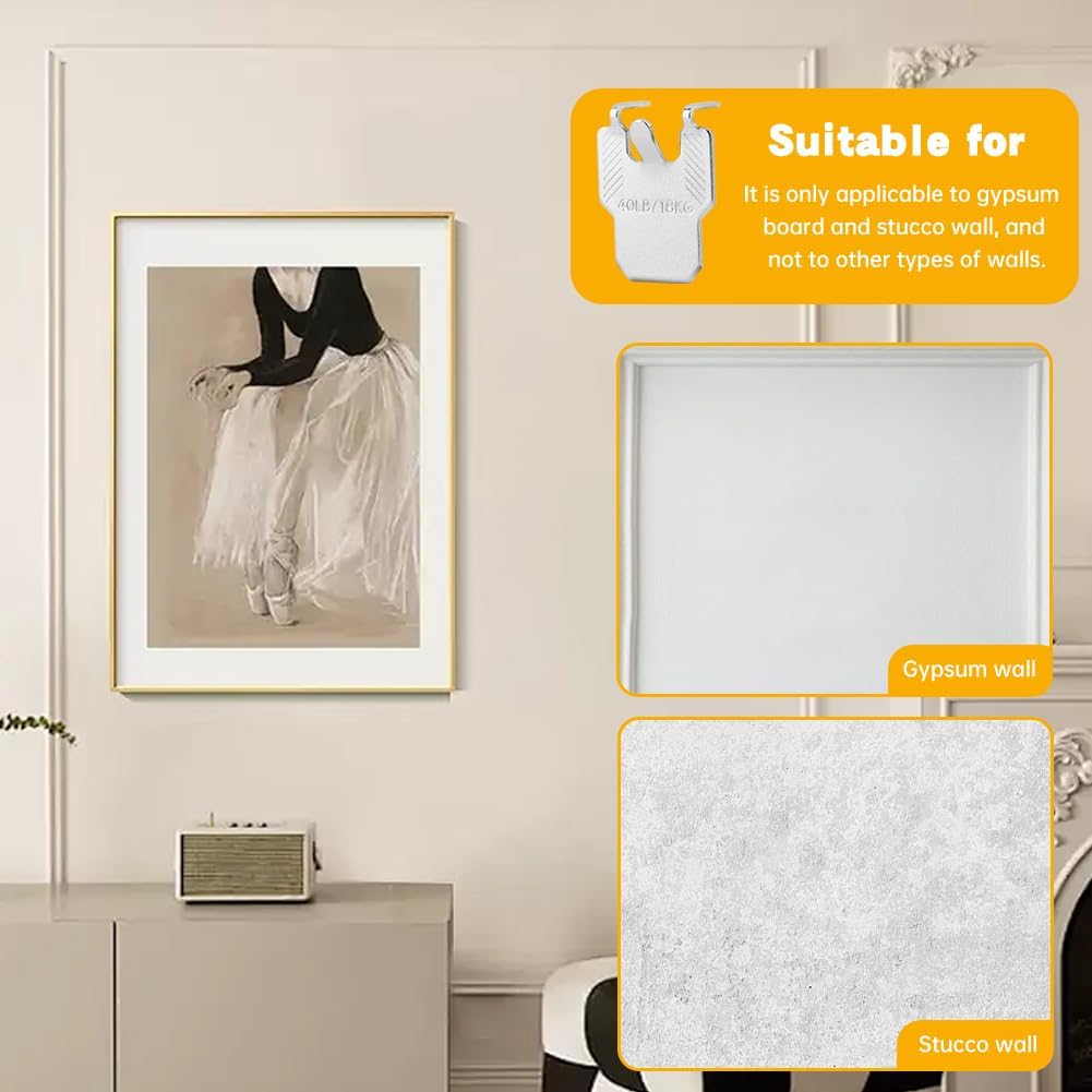 Product Description:The Smarter Way to Hang Heavy Frames—No Tools, No Nails, No Stress!Tired of crooked pictures or wall damage? These industrial-strength claw hangers make decorating effortless while keeping your walls pristine.Why Choose Our Claw Hangers?Holds 40lbs Per Hook – Stronger than traditional nails or adhesive strips.3-Second Setup – Push the steel claws flush against the wall and hang immediately.20-Pack Value – Ampl-e supply for gallery walls, retail displays, or office decor.Renter-Friendly – Remove without leaving noticeable damage.Durable Steel Construction – Won’t bend or rust like cheap plastic alternatives.Tech Specs: Material: Hardened iron claws Size: 4.15 x 3 x 2.1 cm (1.6” x 1.2” x 0.8”) Weight Capacity: 40lbs (18kg) per hook Surface Compatibility: Drywall & plaster onlyWhat’s Included:✔ 20x Steel Claw HangersPerfect For: Apartment dwellers Art galleries School classrooms Retail stores DIY home makeovers