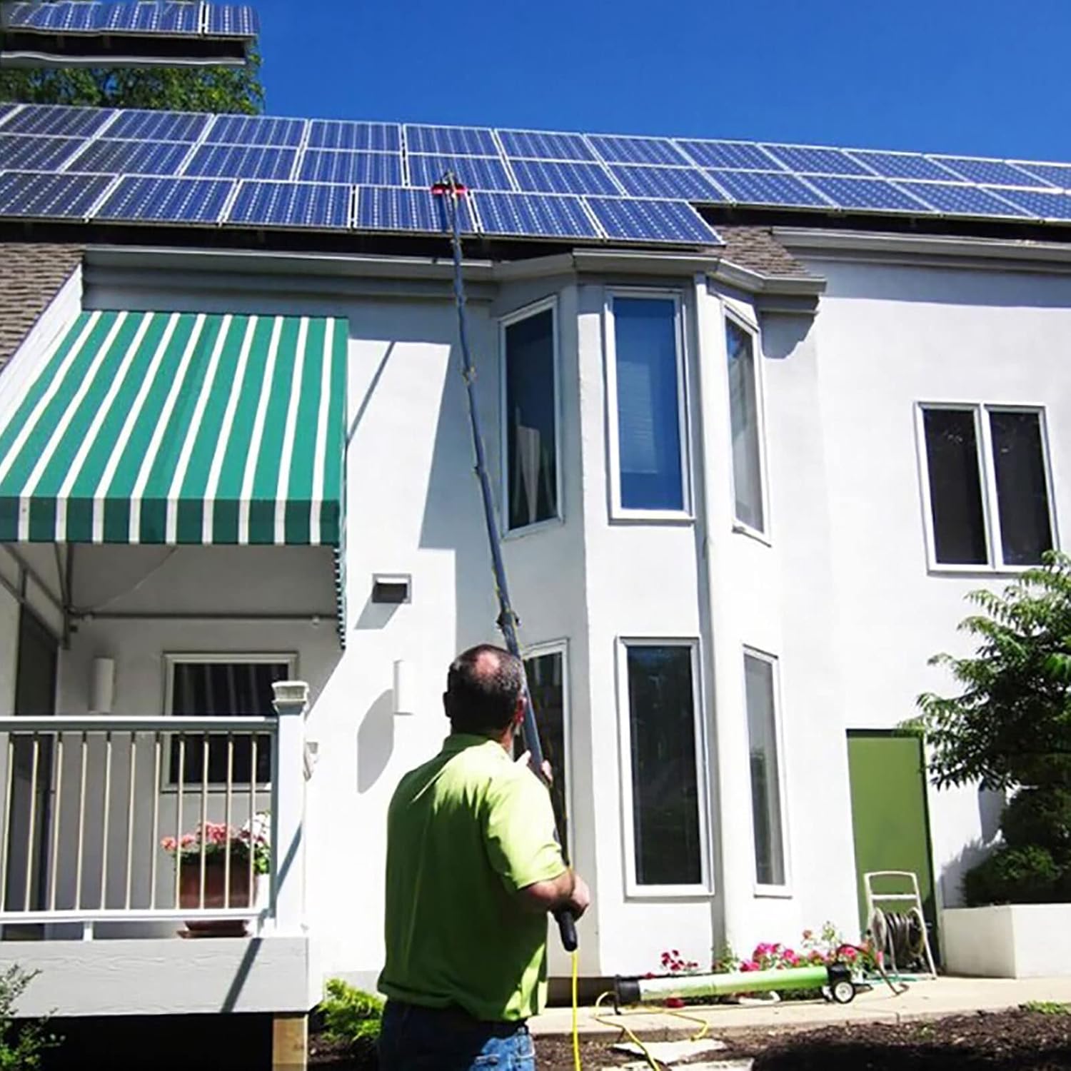 ★ Still clumsily climbing ladders to clear tall windows? Our Extendable telescopic water brushes are the right choice!Our water fed poles easy to use, just connect to any standard household water source, turn on the tap, the water-fed brush easily connects to the garden tap with standard hose fittings, the kit is ready to use as soon as it's out of the packaging. Water supply pole kits are 12ft~39ft, in length and can be used to clean and wash tall windows and solar panels. Get from the ground to your windows faster and safer than ever with this window cleaning brush.★ Product Parameters:Name: Telescopic Pole Washing BrushMaterial: Aluminum+Carbon FiberMaximum connection height: 12mWater supply hose: 20mBrush width: 55cmApplications: window cleaning, photovoltaic panel cleaning, bus / exterior cleaning, large vehicles, trucks, trucks, caravans, boats, etc.★Features:- Multifunctional water spray brush, high altitude cleaning.- Using high-density reinforced aluminum alloy, high hardness, not easy to rust, and light weight. It will not bend even if it is 12m long.- The steel buckle is fixed for easy installation and disassembly.- Anti-break joint design, can be used with a variety of cleaning tools to complete high-level cleaning operations.- Pure copper switch more durable.- Universal design, the brush head can rotate freely.★ Packing List:1 x Telescopic Extension Cleaning Pole 1 x Water brush1 x Water trap1 x 20m water pipe1 x Faucet connector1 x Universal joint★ Service:If you have any questions, please email us, we will reply to you within 24 hours and provide you with the best service.