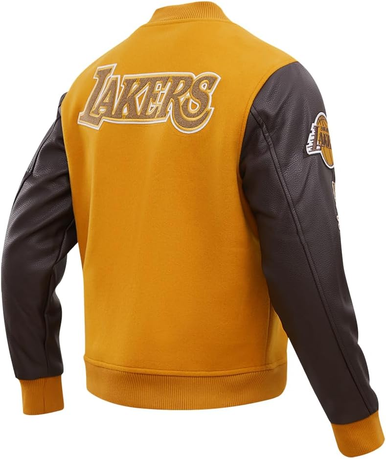 Show your team spirit in style with our Men's NBA Classic Varsity Wool Pu Varsity Jacket. This iconic piece features faux leather sleeves and ribbed details for a timeless athletic look. Stay warm with a quilted lining and zip/snap closure. Officially Licensed Merchandise for true fans.