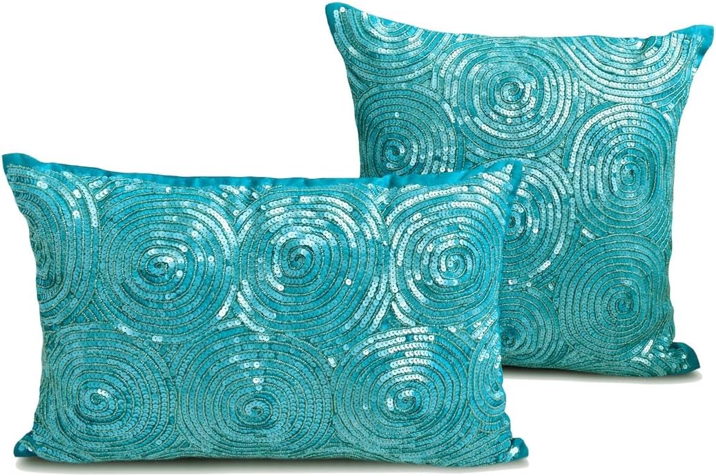 Aqua Touch is an exclusive 100% handmade decorative pillow cover designed and created with intrinsic detailing. A perfect item to decorate your living room, bedroom, office, couch, chair, sofa or bed.Decorative Throw Pillow Cover Details:Condition: 100% Brand NewDimension: 16 x 16 inch (40 x 40 cm)Fabric: Art SilkMaterial: SilkColor: BlueColor Map: BluePattern: Circles & DotsStyle: ModernBack of the Cover: Plain fabric with concealed flap covered zipper on the back for easy insertion and removal of insertsNote: This listing for decorative throw pillow cover does not include Pillow or Inserts. We do not sell pillow inserts on our store. Due to the difference in computer monitors, actual colors may slightly vary.The HomeCentric is the place where luxury is coated in comfort. Coveted by many, we offer a wide range of decorative pillow covers, euro shams, bed runners, table runners, duvet covers and even fabrics for your curtains and other home decor products. Handcrafted by Indian artisans, our products exhibit fine finishing and style to meet all your expectations.Our services reach out from customization to endless effort from your first click to the day we deliver and even after that. Feel The HomeCentric as your home for decor.